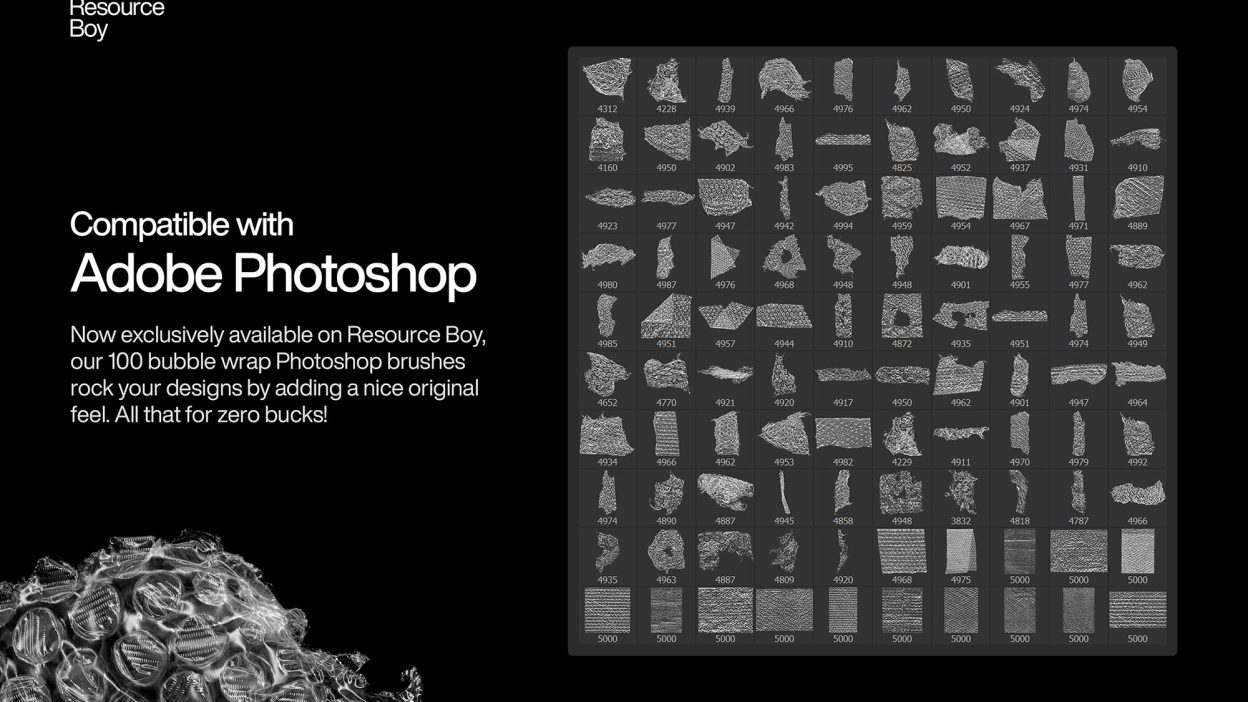 Remember those photos we used to create the greatest bubble wrap texture collection anyone has ever seen? Turns out they can do something like that more than once. One thing led to another, and now we have them back in the game, but this time in Photoshop brush format. How exciting is that? You can have the same bubbly set once as 100 realistic textures and meanwhile as 100 artistic bubble wrap brushes, too, the first-ever collection at such a broad extent. The best of both worlds right at the tip of your fingers, exclusively available on Resource Boy free of charge, and here you think we may ever pull the plug on our surprising offers? Well, in your dreams! We’re just getting started, so stay tuned!