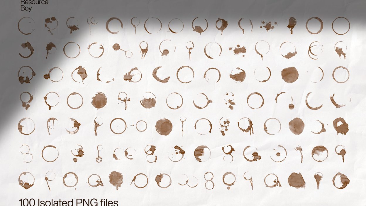 Sometimes you just need something that looks good instantly. 100 Coffee Stain Textures is built for that. It’s made for Adobe Photoshop, and the previews show what you can expect.