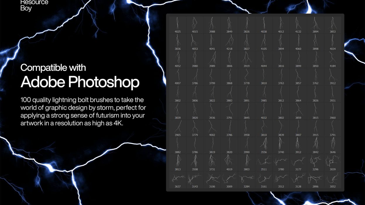Not every asset deserves a spot in your toolbox. 100 Lightning Bolt Photoshop Brushes is one of the few that actually earns it. It’s made for Adobe Photoshop, and the previews show what you can expect.