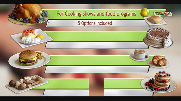 • Notes from the original post: Videohive Cooking TV Lower Third Pack (5) 11563581 Free Download After Effects Projects